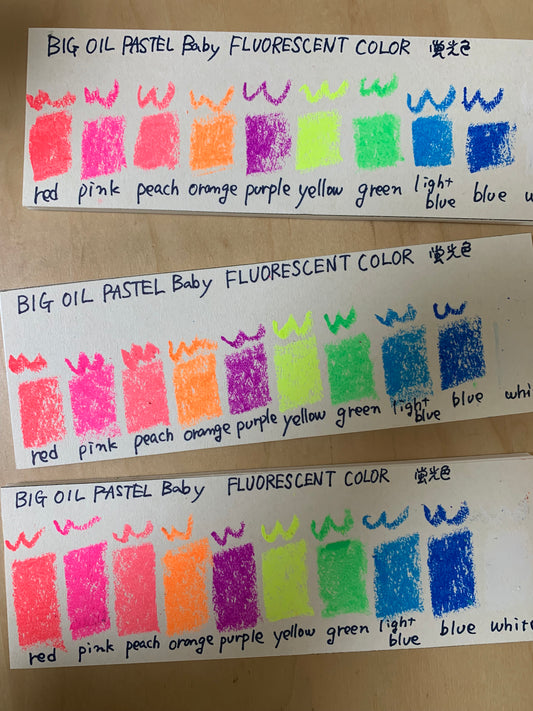 The BIG OIL PASTEL fluorescent color series may fade under UV light and are not pigments that meet ACMI standards